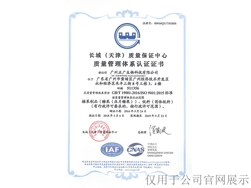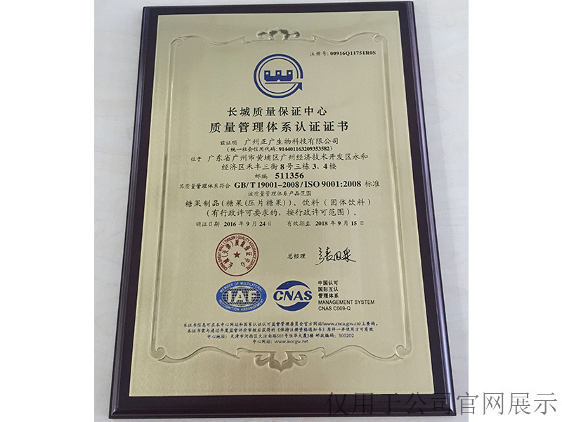 我司取得“ISO9001長(zhǎng)城質(zhì)量保證中心質(zhì)量管理體系認(rèn)證證書(shū)”;